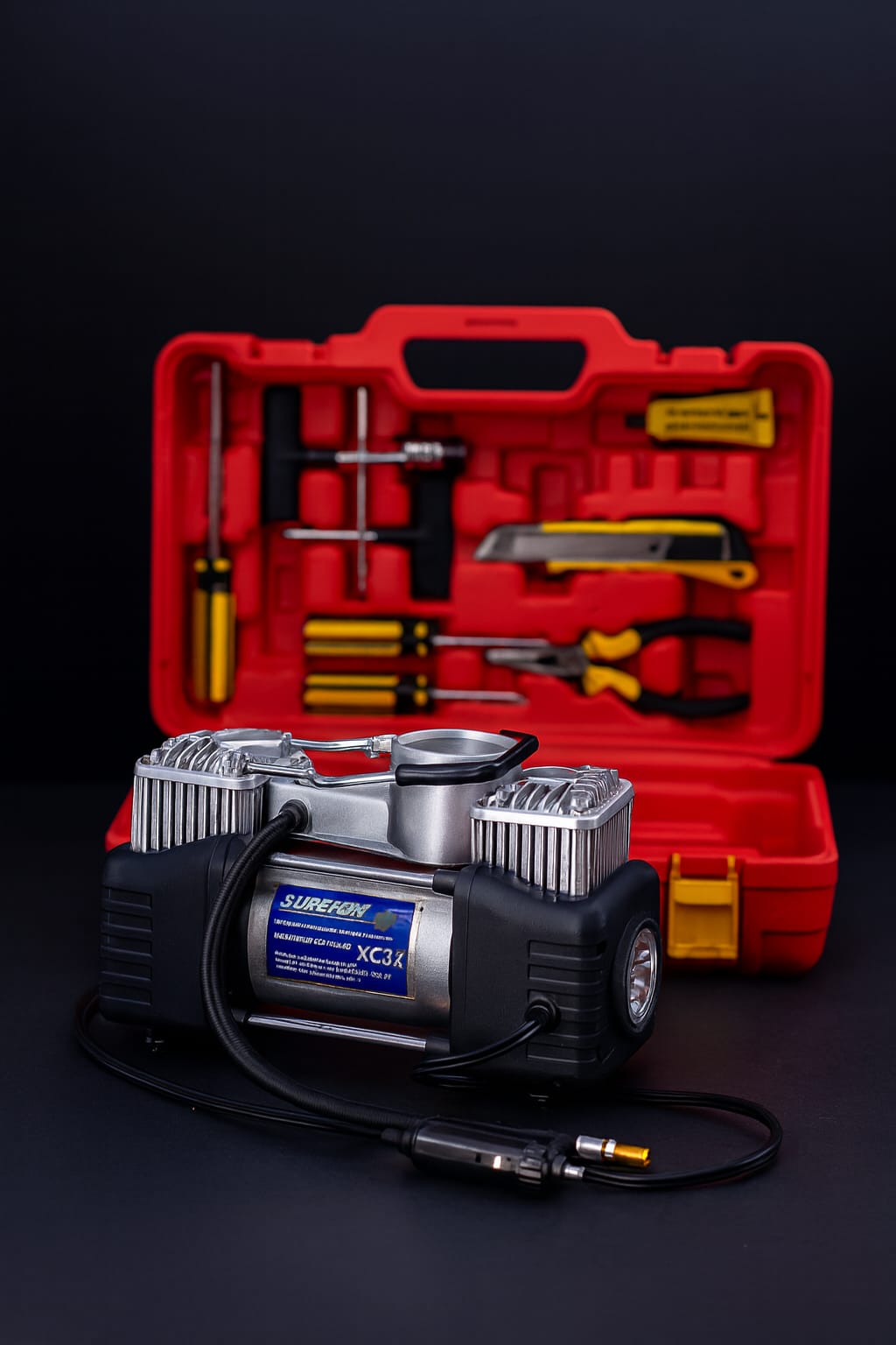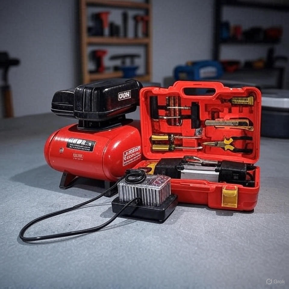 خديتو باش نستعملو فالطريق، والله ما ندمت، نفخ العجلة فـ دقيقة وحدة! والعلبة ديال الأدوات منظمة بزاف.
